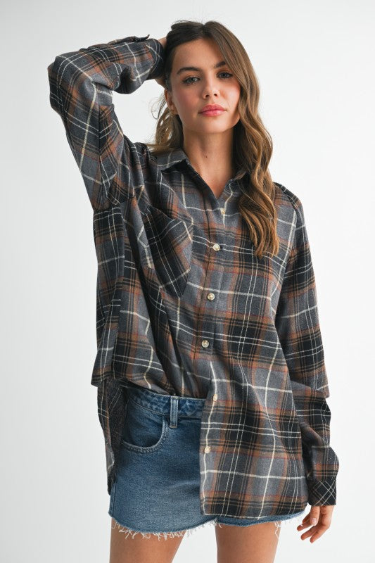 Wrap yourself in cozy vibes with the Katie flannel! Its boxy silhouette keeps things laid-back, while the side step hem adds a cheeky modern twist. Raglan sleeves give you all the freedom to move, making this flannel your go-to for both style and comfort on those chilly days.