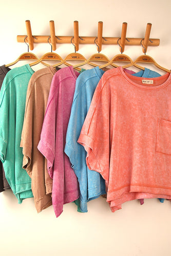 Mineral Wash Sleeveless V-Neck Tunic with Side Slit