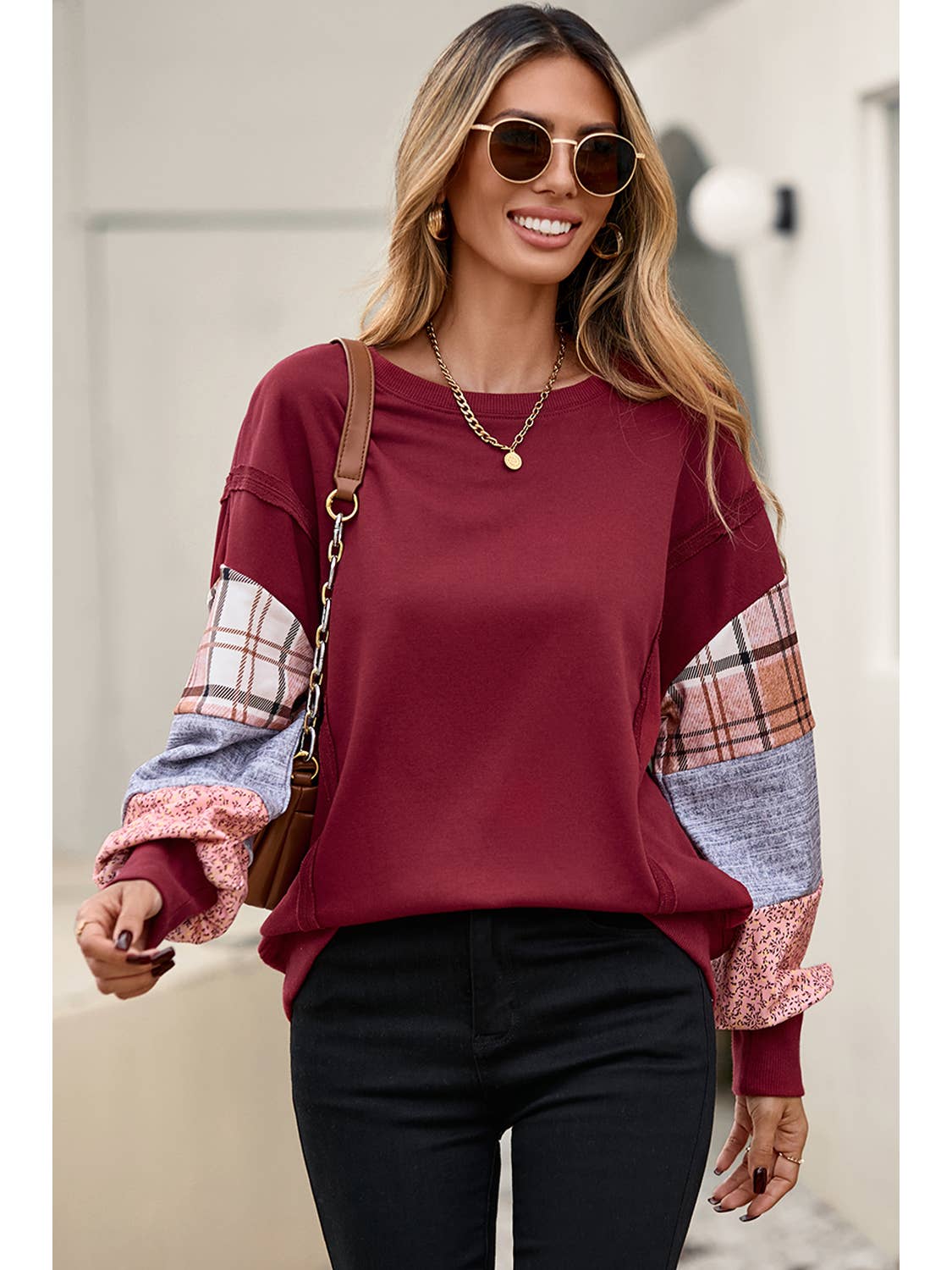 Stay cozy and cool this fall with our bold plaid patchwork sweatshirt. Featuring raw seam details and a relaxed fit with drop shoulders, it brings edgy street style to your everyday look. Made from soft, warm fabric, it’s perfect for all-day comfort. Pair it with your favorite jeans for an effortless, casual vibe that’s ready to rock the season!